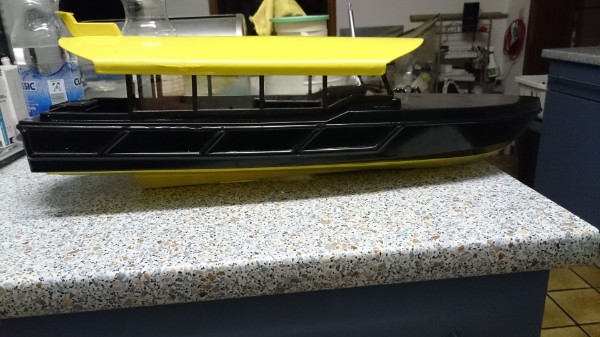 Nun wird das Taxi noch am Wochenende ins noch kühle Nass gesetzt. Embleme sind heute auch gekommen, aufkleben und dann sieht das Modell schon fast wie Echt aus. Besatzung ist auch vorhanden. Denn es gibt nichts schlimmeres für mich wenn Geisterschiffe auf dem Wasser Ihr Fahrerisches können darbieten...... na ja , das sind dann die "Fliegenden Holländer". welche noch zu uns im Auto unterwegs sind. Getestet und für Gut befunden und der Öffentlichkeit nach 4 Tägiger Bauzeit mit Lackhindernissen vorgestellt.Kleinikeiten w.B. erähnten Lackproblemen, welche in den Griff zu bekommen sind {Besserer Lack} und was sonst noch wie auch bei Originalen, nach der 1ten Testfahrt zu beheben sind. | |